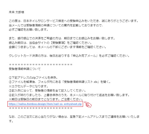 「申込み確認メール」に記載のファイルを保存