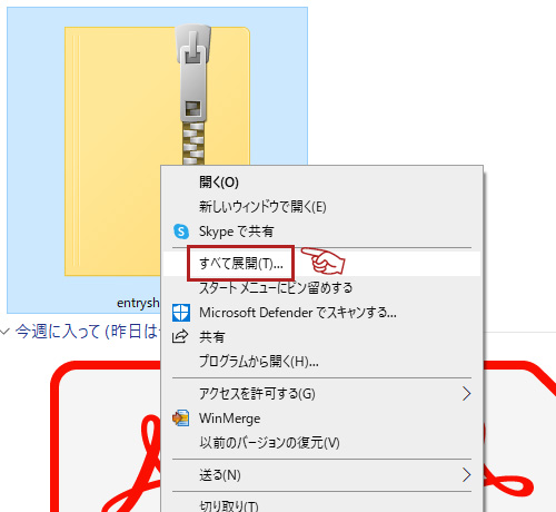 ダウンロードしたファイルを解凍します。