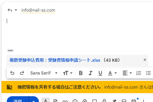 上書きしたエクセルデータを「申込み確認メール」に添付し、返送をお願い致します。
